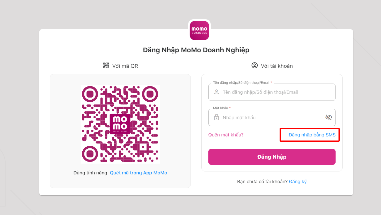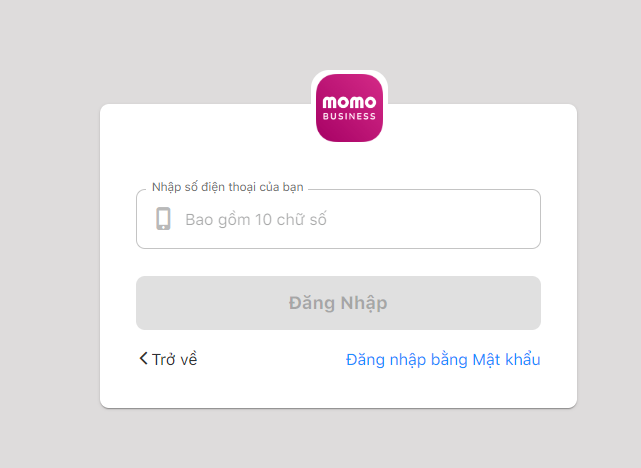 - Bước 1: Truy cập vào đường dẫn: https://business.momo.vn/sanpham/auth/login