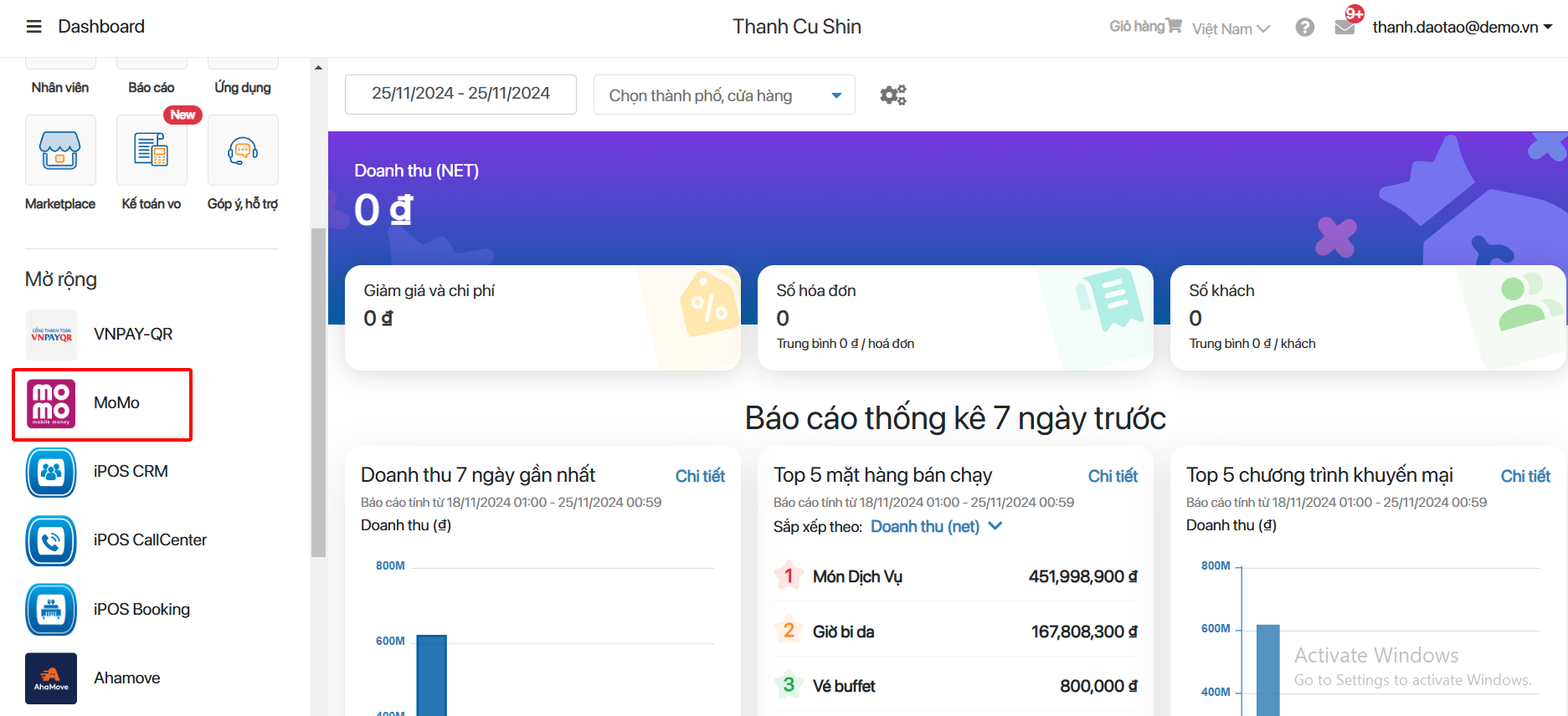 - Bước 2: Tại giao diện chính, tìm đến mục “Mở rộng” và chọn “MoMo“.