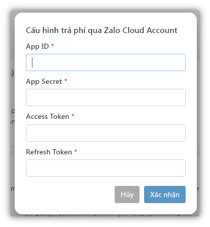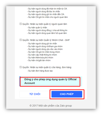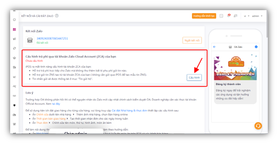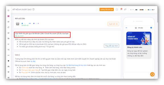 - Tạo liên kết ZCA để gửi tin nhắn ZNS: