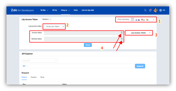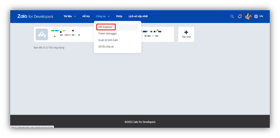 - Chọn quay lại ứng dụng và chọn Công cụ – API Explorer