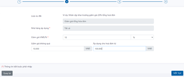 Bước 2: Nhập các điều kiện giá trị ưu đãi