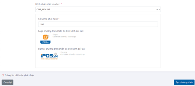 • Kênh phân phối voucher: Chọn đối tác phát hành voucher