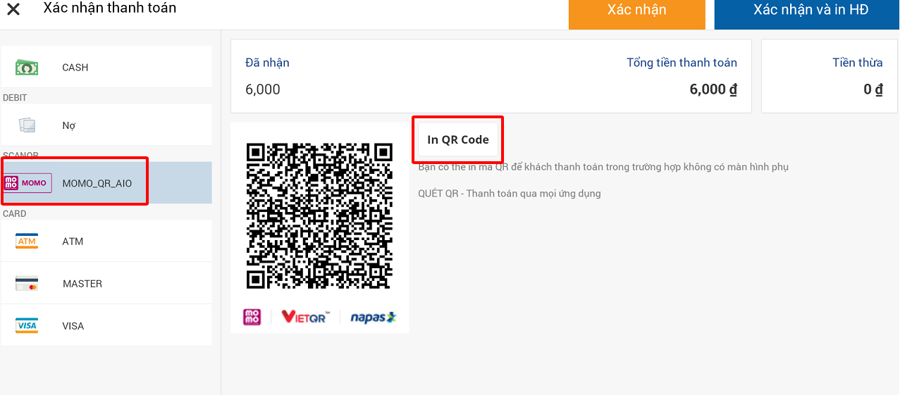 Lưu ý: PDA chưa hỗ trợ in phiếu tạm tính hiển thị QR đa năng.